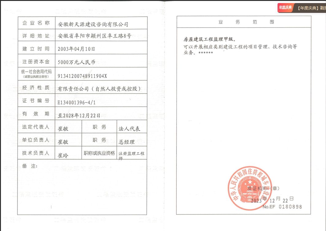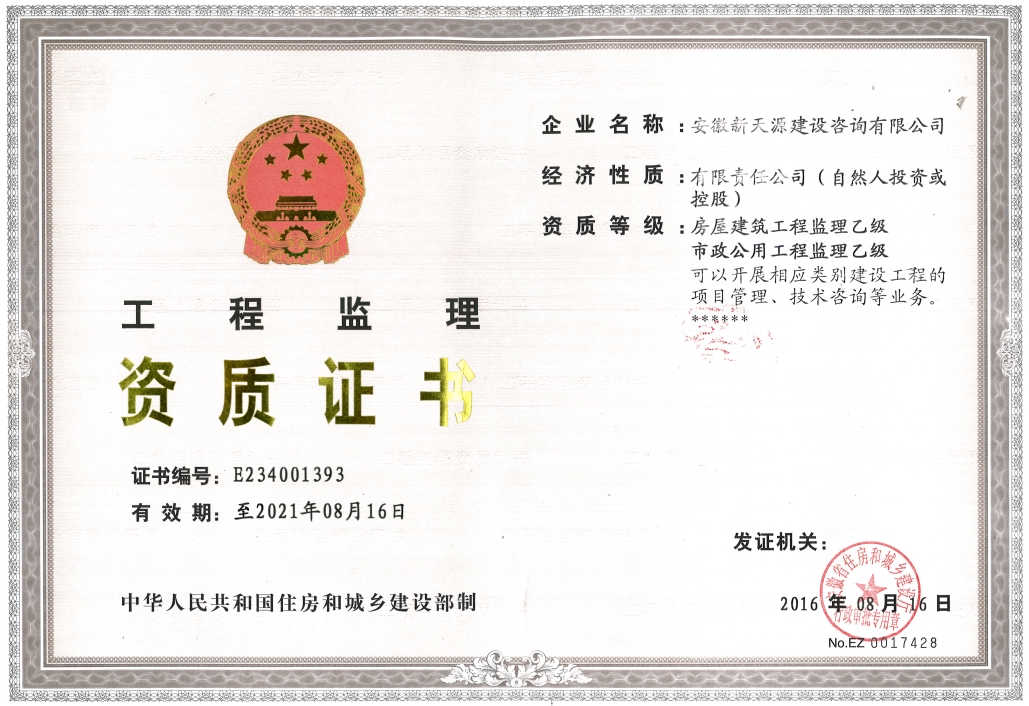 2014年1月取得工程監(jiān)理資質(zhì)證書;現(xiàn)工程招標(biāo)代理及工程造價已取得甲級資質(zhì),并開展了環(huán)境影響評價、工程測量、房地產(chǎn)評估等業(yè)務(wù)。